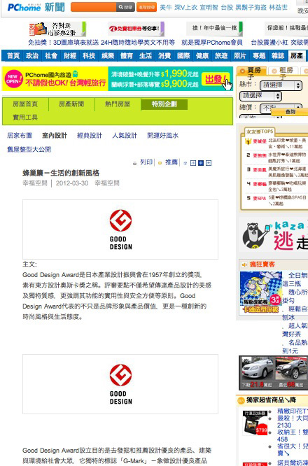 News■2013年10月 展覽 - 11月國際建材家具大展■2013年9月 新聞報導 - 經濟日報 ■2013年6月 新聞報導 - 經濟日報 ■2012年6月 新聞報導 - Yahoo!奇摩房地產 ■2012年5月 媒體報導 - DECO ■2012年5月 媒體報導 - ARCH ■2012年4月 新聞報導 - 中視新聞 ■2012年4月 新聞報導 - 中天新聞 ■2012年3月 新聞報導 - PChome 新聞 ■2012年3月 新聞報導 - Yahoo!奇摩房地產 ■2012年3月 新聞報導 - Hinet 房地產 ■2012年3月 媒體報導 - 室內設計 ■2012年3月 媒體報導 - ARCH ■2012年2月 媒體報導 - ARCH ■2012年2月 媒體報導 - 日本商店建築 ■2012年1月 新聞報導 - PChome ■2012年1月 新聞報導 - Yahoo!奇摩房地產 ■2012年1月 新聞報導 - Hinet 房地產 ■2011年12月 媒體報導 - ARCH ■2011年12月 媒體報導 - 日本Allabout ■2011年12月 媒體報導 - 日本商店建築 ■2011年12月 媒體報導 - 日本I'm Home ■2011年12月 媒體報導 - 日本住まいの設計 ■2011年11月 媒體報導 - 日本朝日新聞 ■2011年10月 媒體報導 - 日本日経産業新聞 ■2011年10月 グッドデザイン賞受賞のお知らせ ■2011年9月 媒體報導 - 日本リフォーム産業新聞 ■2011年9月 學術報導 - 日本建材試験情報 ■2011年7月 媒體報導 - 日本My Home+ ■2011年7月 媒體報導 - 日本I'm Home ■2011年7月 媒體報導 - 日本Confort ■2011年7月 媒體報導 - 日本商店建築 |