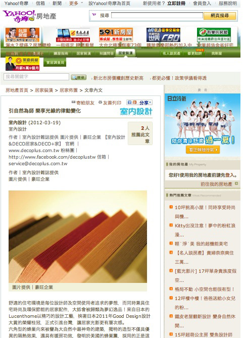News■2013年10月 展覽 - 11月國際建材家具大展■2013年9月 新聞報導 - 經濟日報 ■2013年6月 新聞報導 - 經濟日報 ■2012年6月 新聞報導 - Yahoo!奇摩房地產 ■2012年5月 媒體報導 - DECO ■2012年5月 媒體報導 - ARCH ■2012年4月 新聞報導 - 中視新聞 ■2012年4月 新聞報導 - 中天新聞 ■2012年3月 新聞報導 - PChome 新聞 ■2012年3月 新聞報導 - Yahoo!奇摩房地產 ■2012年3月 新聞報導 - Hinet 房地產 ■2012年3月 媒體報導 - 室內設計 ■2012年3月 媒體報導 - ARCH ■2012年2月 媒體報導 - ARCH ■2012年2月 媒體報導 - 日本商店建築 ■2012年1月 新聞報導 - PChome ■2012年1月 新聞報導 - Yahoo!奇摩房地產 ■2012年1月 新聞報導 - Hinet 房地產 ■2011年12月 媒體報導 - ARCH ■2011年12月 媒體報導 - 日本Allabout ■2011年12月 媒體報導 - 日本商店建築 ■2011年12月 媒體報導 - 日本I'm Home ■2011年12月 媒體報導 - 日本住まいの設計 ■2011年11月 媒體報導 - 日本朝日新聞 ■2011年10月 媒體報導 - 日本日経産業新聞 ■2011年10月 グッドデザイン賞受賞のお知らせ ■2011年9月 媒體報導 - 日本リフォーム産業新聞 ■2011年9月 學術報導 - 日本建材試験情報 ■2011年7月 媒體報導 - 日本My Home+ ■2011年7月 媒體報導 - 日本I'm Home ■2011年7月 媒體報導 - 日本Confort ■2011年7月 媒體報導 - 日本商店建築 |